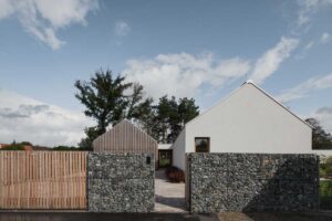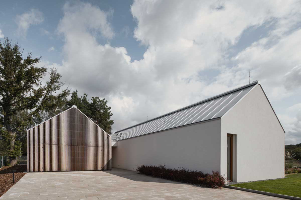 Právě práce s místním kontextem zásadně ovlivnila podobu domu. Okolní zástavba se sedlovými střechami poskytla architektům jasný rámec, na který navázali střídmou formou a důrazem na proporce.
